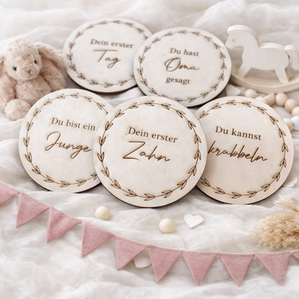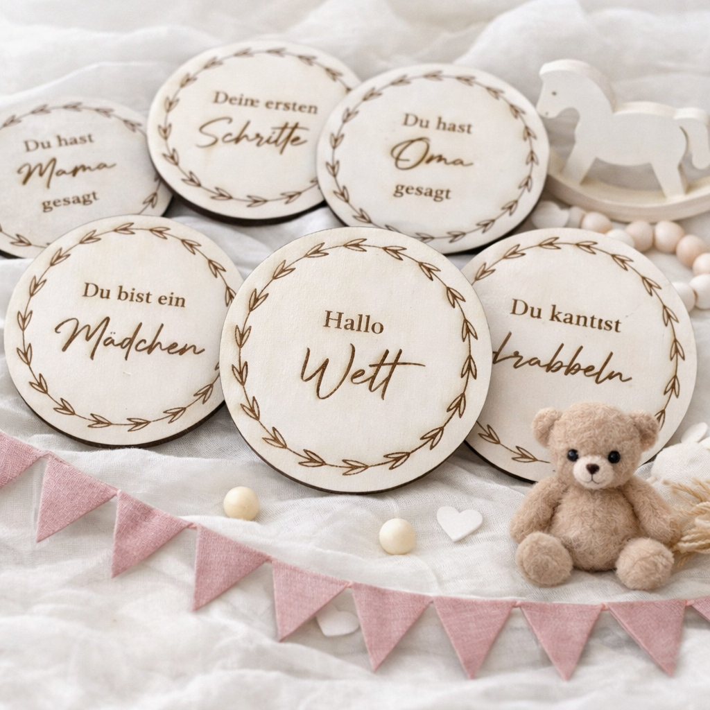 Die Karten aus 4mm starkem Birkenholz sind ein wunderbares Fotoaccessoire und ein tolles Geschenk für ein neues Baby.