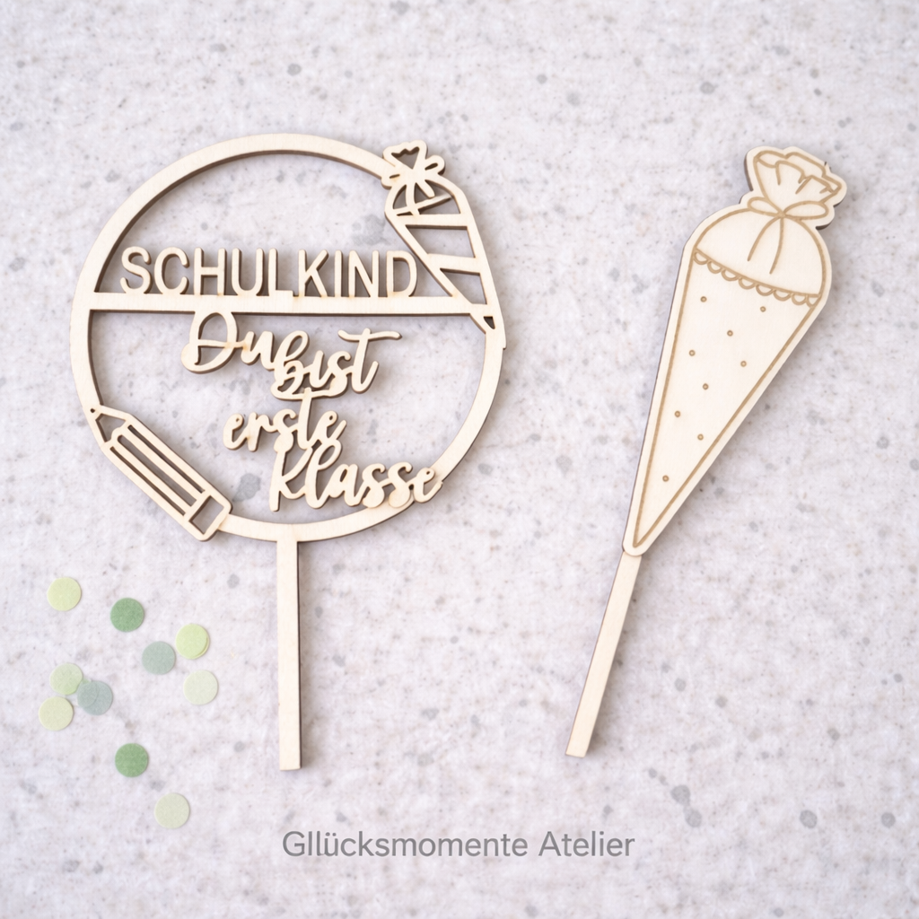 1 x Cake Topper „Schulkind, Du bist erste Klasse“
