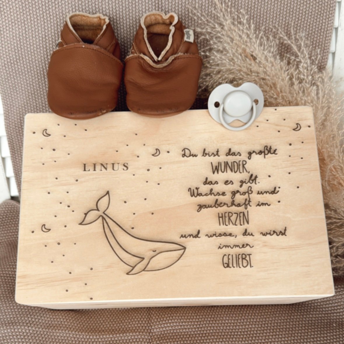 Unsere kleinen Wunder werden so schnell erwachsen und um die wichtigsten Erinnerungen nicht nur im Herzen zu behalten, kannst Du jetzt auch die schönsten Stücke in einer wunderschönen und personalisierten Holzbox aufbewahren.