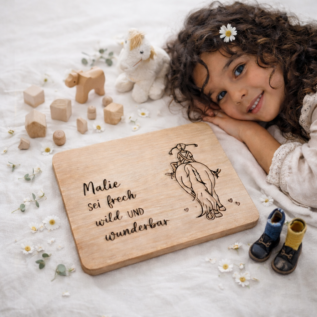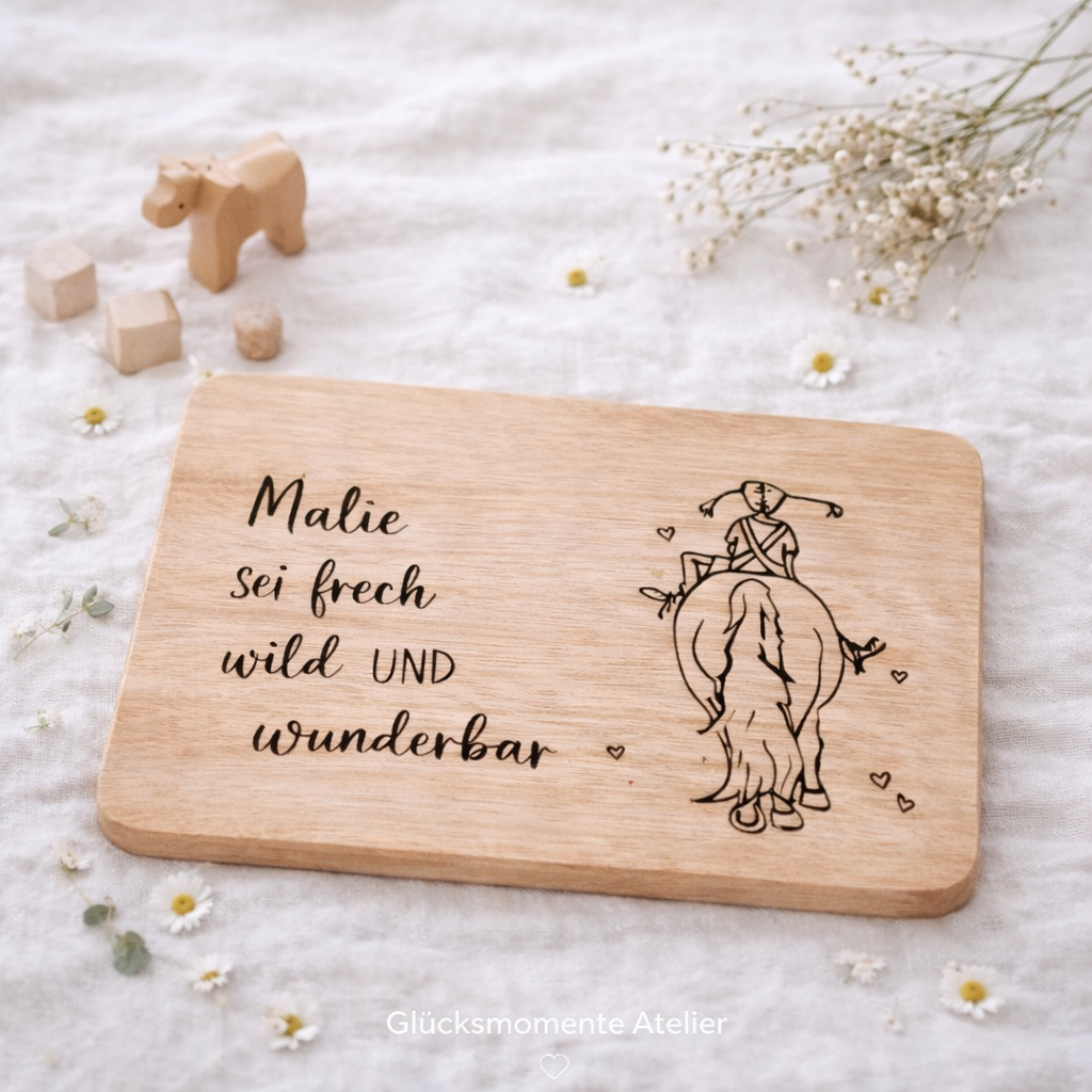 Personalisiertes Frühstücksbrett mit dem niedlichen Motiv der Pipiltta und eingraviertem Namen, der jeden Morgen ein Lächeln auf das Gesicht zaubern wird.