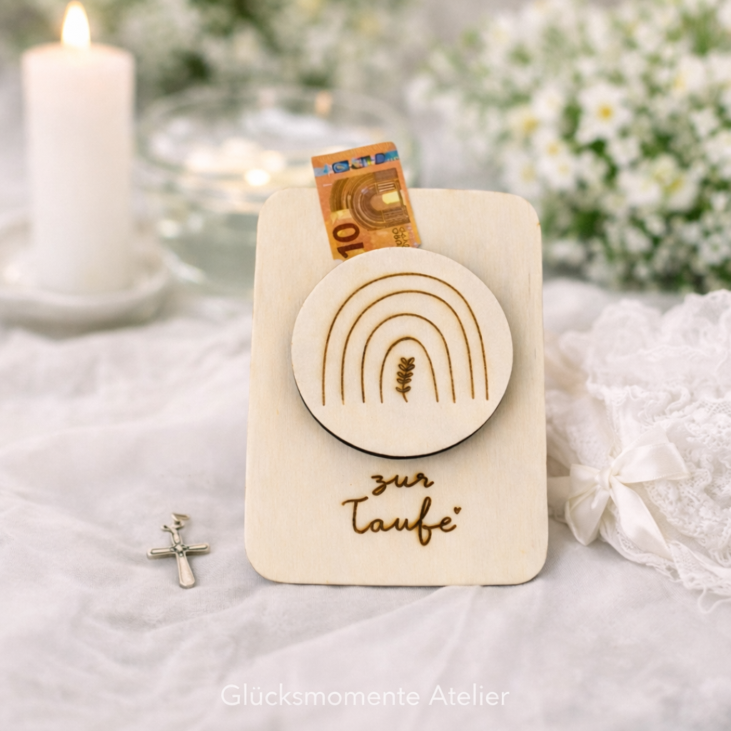 ⛵ Personalisierte Geldgeschenkverpackung für Kommunion, Taufe & Konfirmation – handgefertigte Holzkarte