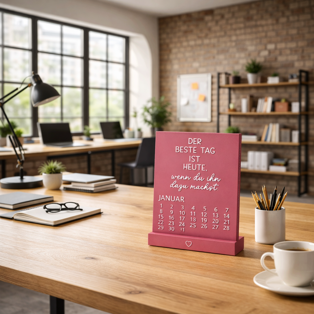 Dieser minimalistische Schreibtischkalender (immerwährend) verbindet modernes Design mit inspirierenden Inhalten.