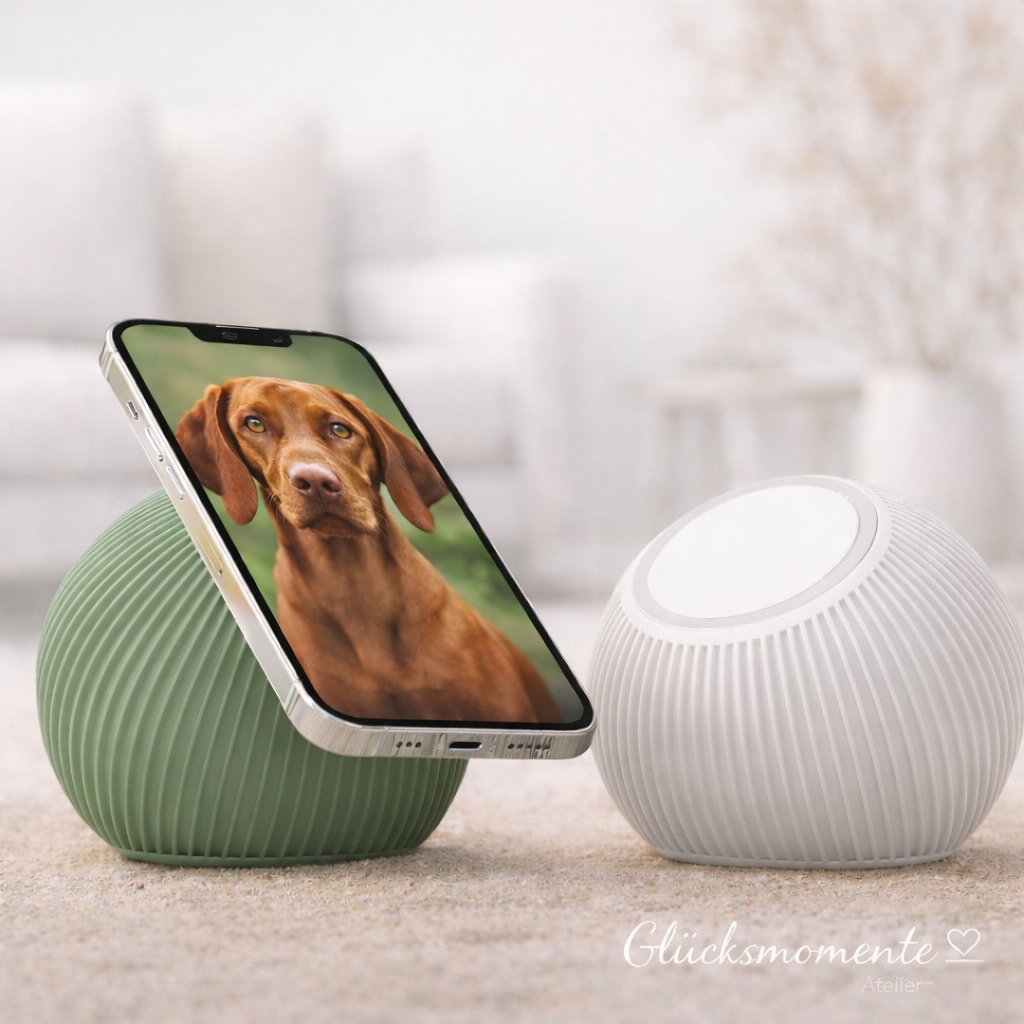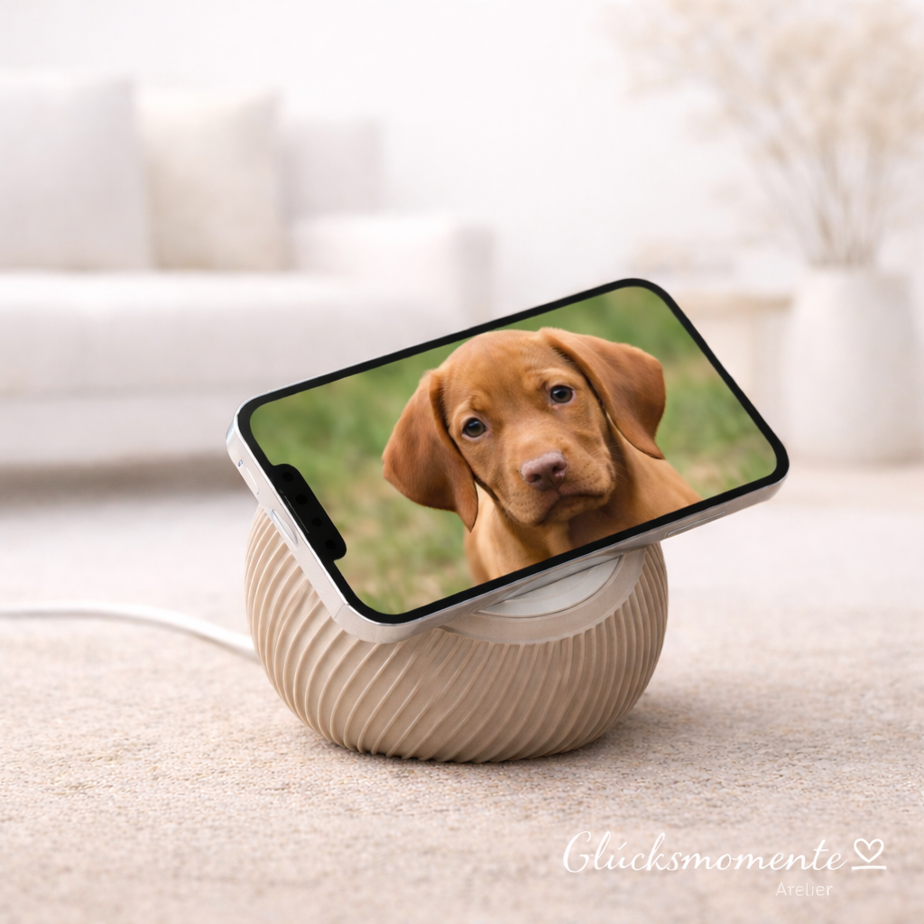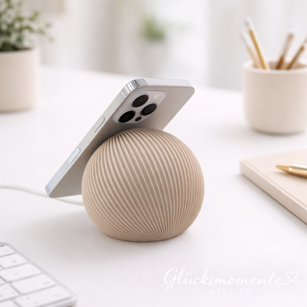 Moderner, gerippter MagSafe-Handy-Ladeständer – eine stilvolle Bereicherung Deiner Einrichtung im ruhigen Japandi-Look.