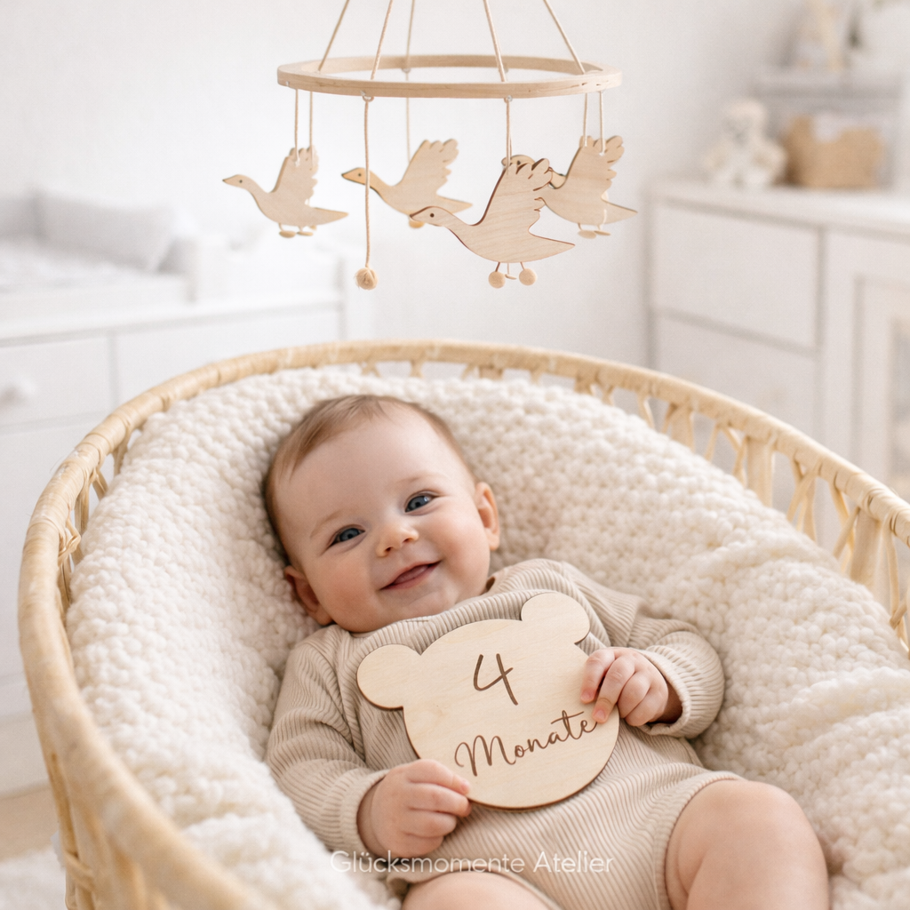 Die Bärchen aus 4mm starkem Birkenholz sind ein wunderbares Fotoaccessoire und ein tolles Geschenk für ein neues Baby.