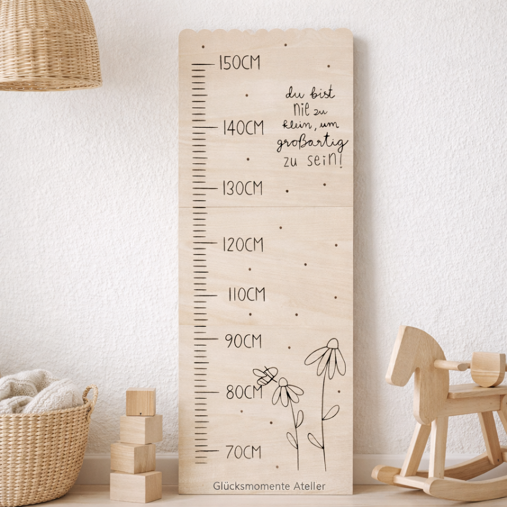 Tauche ein in die Magie des Wachsens mit dieser wunderschönen personalisierten Kindermesslatte!