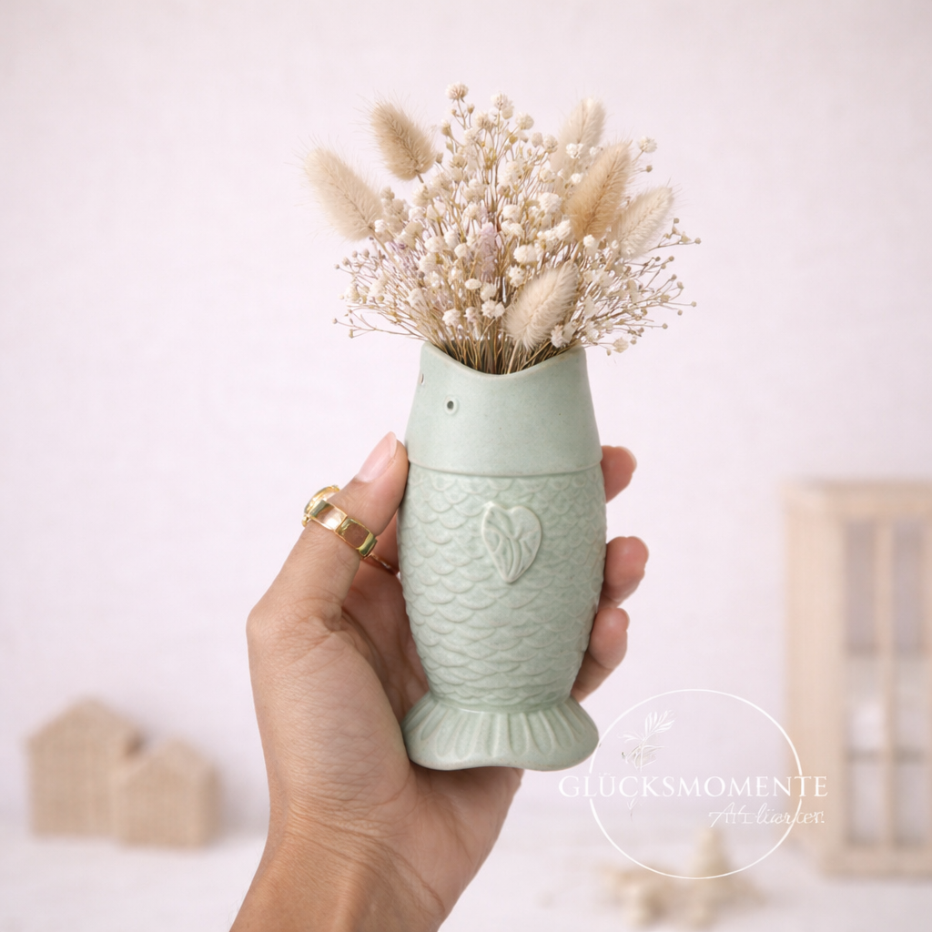 Perfekt für getrocknete Blumen, kleine Arrangements oder als stilvolles dekoratives Highlight. Du kannst auch ein Glas einsetzen und frische Blumen einfüllen.