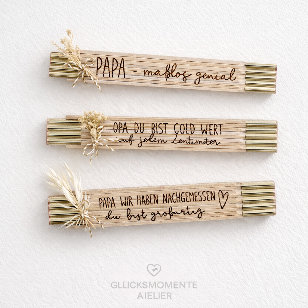 Bist Du auf der Suche nach einem Geschenk für Handwerker und Heimwerker? Ob zum Geburtstag, zum Vatertag oder als Werbegeschenk für dein Unternehmen – dieser personalisierte Zollstock ist eine originelle und nützliche Geschenkidee.